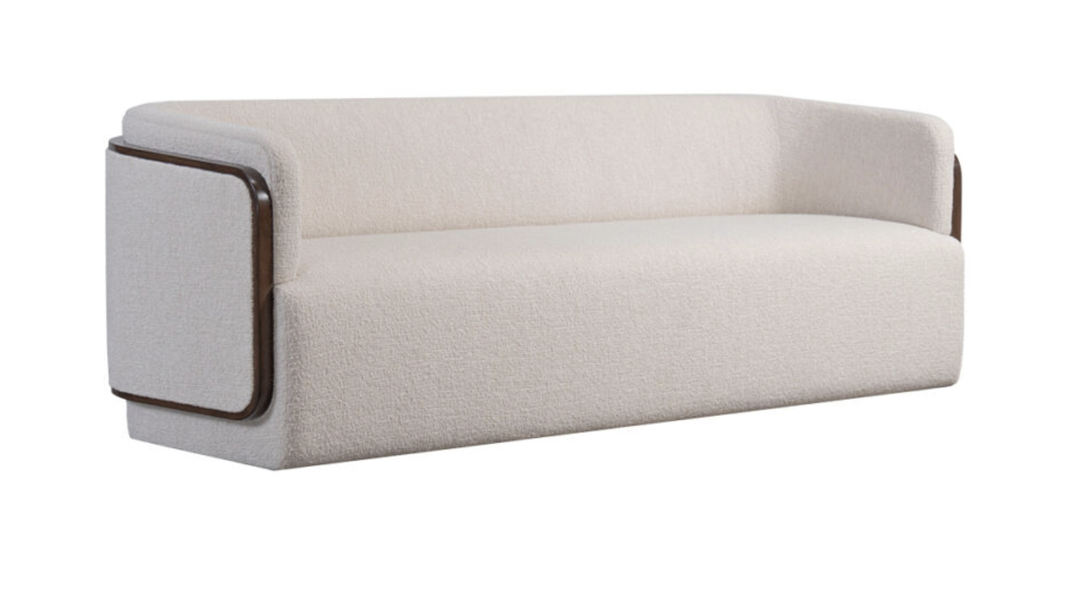 WIDTH: 84" DEPTH: 32" ARM HEIGHT: 27" SEAT HEIGHT: 18" OVERALL HEIGHT: 29" (CUSTOM SIZES AVAL.) 14 yds of 54" plain COM required. 252 sq ft of COL Tuxedo style sofa with tight seat and tight back. Standard wood detail in alder wood. Finish shown #80 Mink on alder. Oak and Walnut wood available please inquire for a quote.
