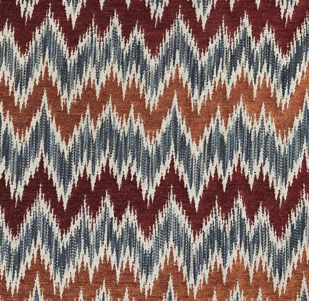 A vibrant, colourful woven fabric featuring a lively flamestitch pattern which takes inspiration from the distinctive Florentine pattern found in the 17th Century Bargello Palace. The combination of super soft chenille and space-dyed yarns creates a rich and sumptuous look and feel. Composition: 50% Viscose, 25% Cotton, 20% Polyester, 5% Linen Fabric repeat: 25.5cm / 10.25" Width 140cm / 55.25" Rubs: 35,000 (Severe Contract) Aftercare: Cool iron, Dry clean Perchloroethylene Usages: Curtain Fabrics, Upholstery Fabrics, Contract Fabrics Collection: Medici Collection