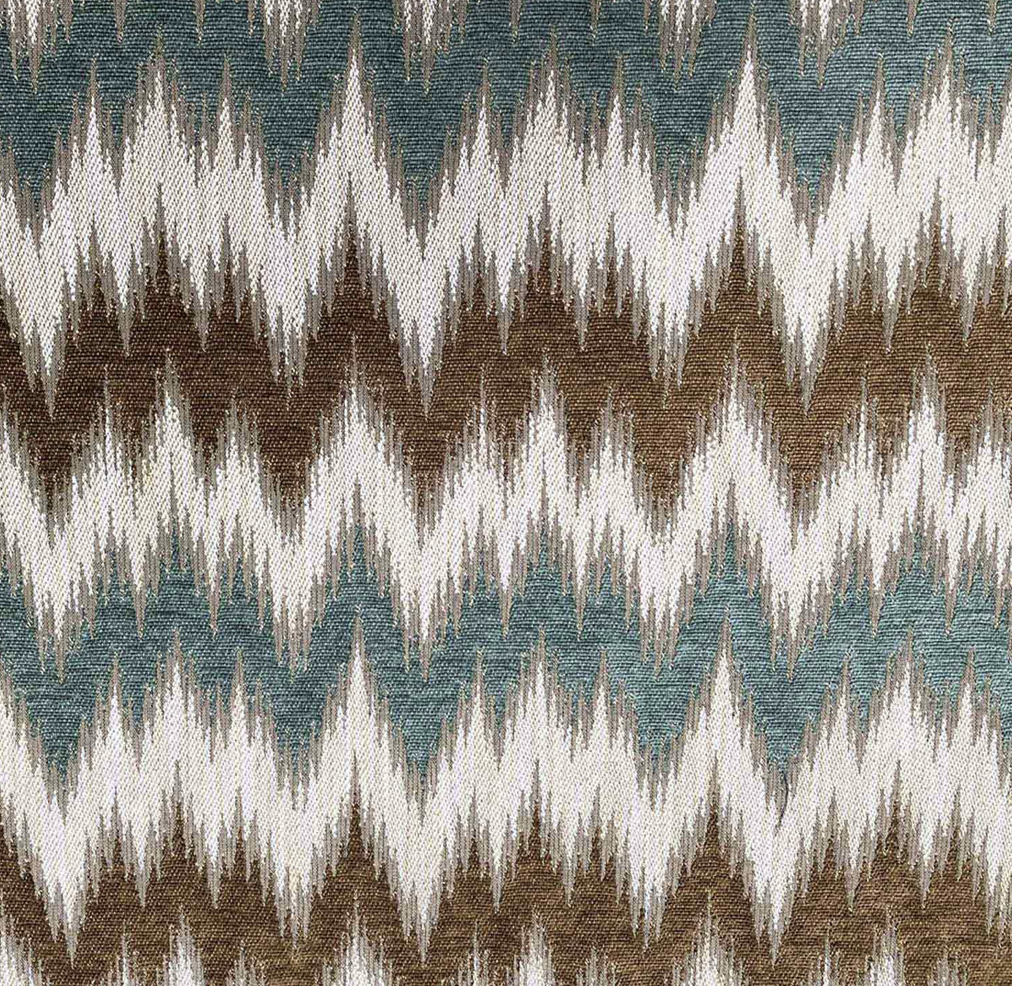 A vibrant, colourful woven fabric featuring a lively flamestitch pattern which takes inspiration from the distinctive Florentine pattern found in the 17th Century Bargello Palace. The combination of super soft chenille and space-dyed yarns creates a rich and sumptuous look and feel. Composition: 50% Viscose, 25% Cotton, 20% Polyester, 5% Linen Fabric repeat: 25.5cm / 10.25" Width 140cm / 55.25" Rubs: 35,000 (Severe Contract) Aftercare: Cool iron, Dry clean Perchloroethylene Usages: Curtain Fabrics, Upholstery Fabrics, Contract Fabrics Collection: Medici Collection