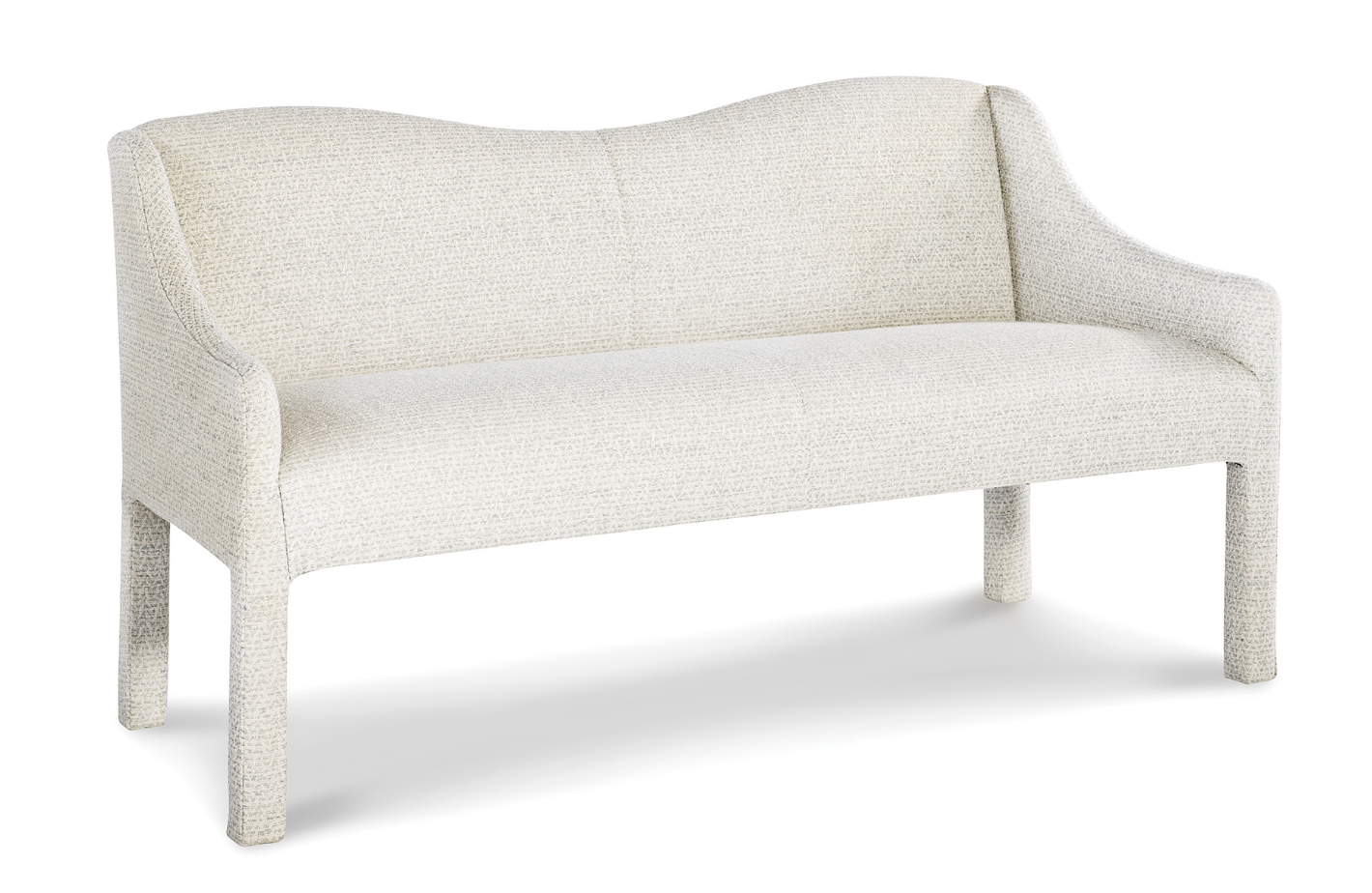 The Eloise Bench captures effortless sophistication through its graceful silhouette and refined simplicity. With its gently scalloped back and softly contoured arms, Eloise offers a fluid, organic shape that feels both sculptural and inviting. Perfect for entryways, dining spaces, or at the foot of a bed, this versatile piece balances form and function with ease. The seamless upholstery and subtle curves highlight expert craftsmanship, making Eloise as beautiful to look at as it is comfortable to sit on. Height: 31.5", Width: 53", Depth: 25.5" Inside Width: 51.5" Inside Depth: 19.5" Seat Height: 19" Arm Height: 21.5" COM Requirement : 6 yds COL Requirement : 108 sq. ft.