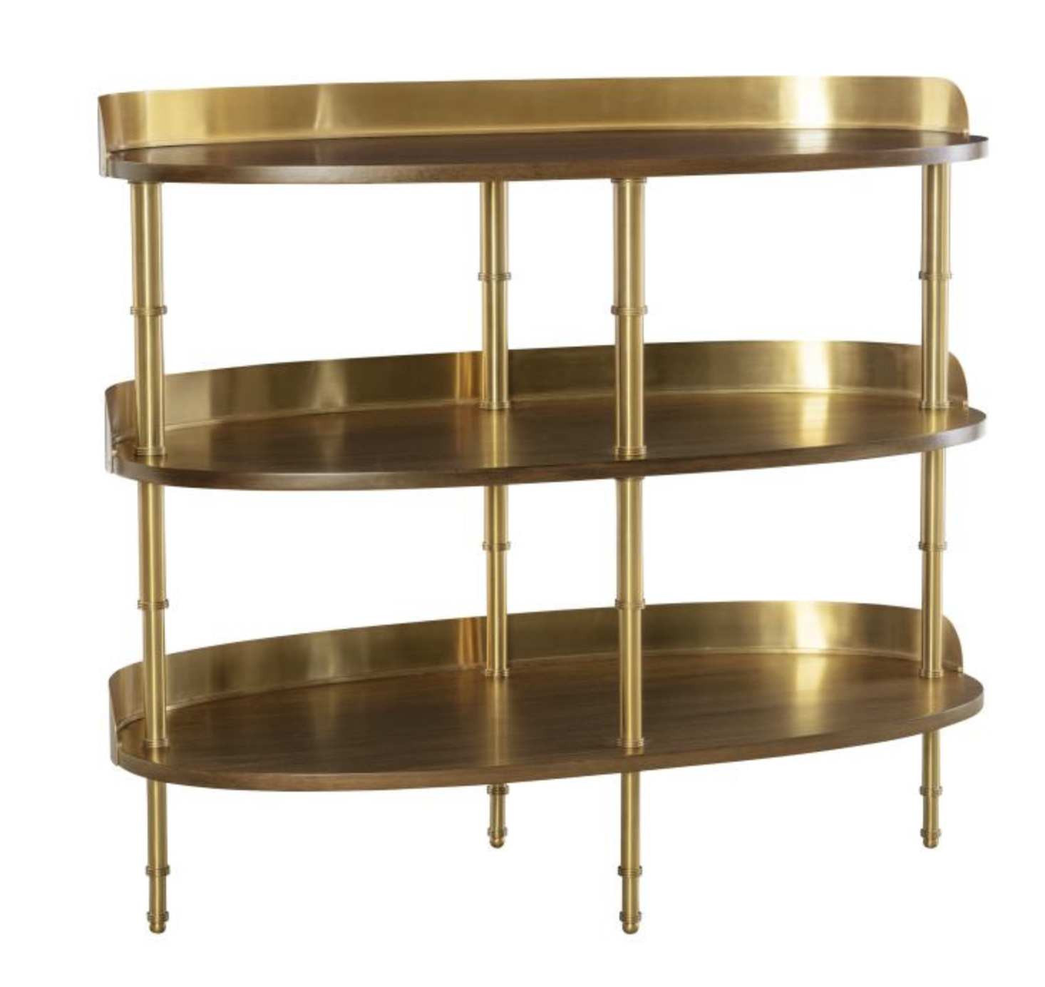 W 42in D 20in H 37in W 106.68cm D 50.8cm H 93.98cm A striking balance of refinement and texture, this bar pays homage to Mariette Himes Gomez’s original design. The frame is elevated with a brass gallery and distinctive brass bamboo uprights, lending a touch of jewelry-like detail and architectural rhythm. Warm walnut shelves, finished in a rich truffle stain, provide both function and depth, offering a luxurious stage for display and storage. Elegant and timeless, this piece embodies Gomez’s legacy of sophisticated restraint and modern classicism. Walnut Veneers, Walnut Solids, Brass Weight 148 lb