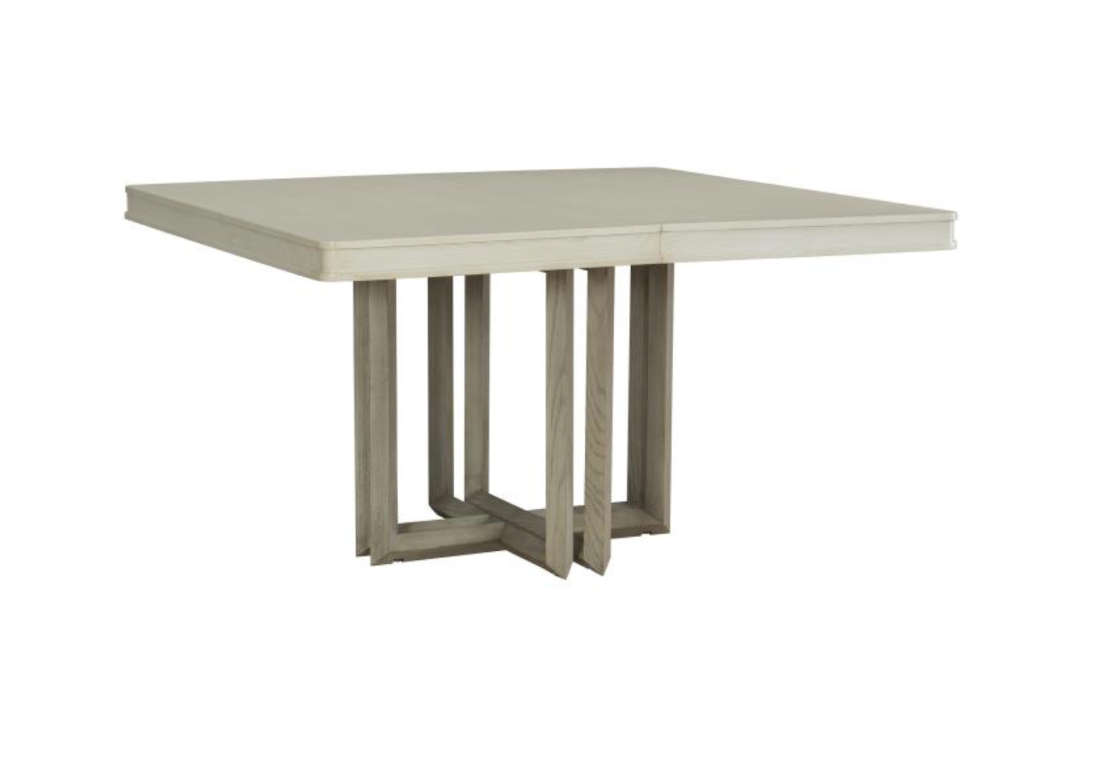 “Structured, solid, with a beautiful edge and base,” David says of the streamlined Hatton table, which features unique diamond-shaped legs and precise proportions. A combination of two finishes offers aesthetic versatility, and the clever construction goes from a handsome 54-inch square, perfect for games or a breakfast table, to an expansive dining or library table when its two 24-inch leaves are installed. Clearance Below Aprons - 27". Crafted in American Ash, the Hatton is shown in a combination of painted finishes. The top features a soft, Chalk finish and base in Lynx. Wood Species: Ash Weight: 287 lb Volume: 36.44 ft³